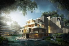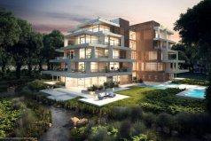 - Здания G + 4 и G + 5 с большими каскадными террасами, идеально вписанные в зеленые окрестности