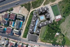 Большая часть земельного участка (4500 кв. м) отведено под зеленые зоны с современным ландшафтным дизайном и объекты инфраструктуры, такие как крытый и открытый бассейны, фитнес и сауна у бассейна, детский бассейн и детская игровая площадка, беседки, открытая и частично крытая автостоянка, и прочее.
