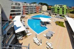 "Емберли" - пятиэтажное здание современной архитектуры, отвечает самым высоким стандартам, соответствующим уровню 4-звездного отеля. Комплекс включает 116 комфортабельных апартаментов. При строительстве использованы только высококачественные материалы. Внешняя и внутренняя отделка выполнена со вкусом и качеством. Все апартаменты имеют удобные планировки, просторные комнаты и балконы. Все курортные квартиры предлагаются в готовом виде, с половыми покрытиями и окрашенными стенами, полностью оборудованными ванными комнатами - готовые к меблировке. Также предлагается вариант покупки квартиры с мебелью. Территория комплекса красиво оформлена газонами и зелеными насаждениями. Также есть открытый бассейн с шезлонгами и зонтиками, ресторан, фитнес-центр, салон красоты, детский бассейн, детская площадка, детский центр, салон красоты, предлагающий услуги косметолога и парикмахера, мини-маркет, где можно купить продукты питания, напитки, косметику.