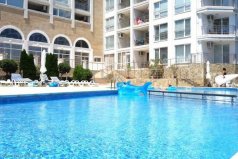 "Галатея" - современный комплекс апартаментов, расположен в южной части курорта Святой Влас, в потрясающе красивом месте, в 100 метрах от пляжа, яхтенный порт Marina Dinevi находится в 3 минутах ходьбы. В нескольких шагах - различные торговые точки, модные бары и уютные рестораны, в 15 минутах ходьбы - центр города. Комплекс расположен на возвышенности, с которой отрывается захватывающий панорамный вид на весь залив Солнечного Берега. Комплекс отлично подходит как для отдыха, так и для постоянного проживания. Прекрасная экология, целебное сочетание морского и горного воздуха, отсутствие поблизости промышленных предприятий, удобные коммуникации, развитая инфраструктура, прекрасный возможности для туризма, спорта и отдыха делают это место уникальным для жизни.