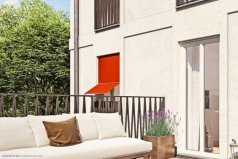 - Изящное решение фасада здания с французскими балконами и маркизами