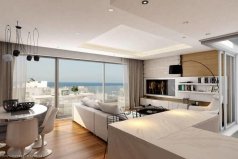 Кроме того, апартаменты на пятом этаже имеют частный роскошный пентхаус на шестом этаже с двумя дополнительными спальнями, с потрясающим панорамным видом на море и Ларнаку.