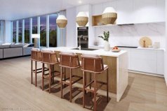 Пентхаусы имеют потолки 3,6 м, окна от пола до потолка 3,6 м с раздвижными дверями и модернизированный комплект бытовой техники с башенным охладителем вина и двойным холодильником.