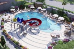 Комплекс будет возведен в зеленой части района, в 5 минутах езды от центральной части. В пешей доступности от комплекса находятся кафе, рестораны, базары, аптеки и магазины. Да моря - 2,5 км.