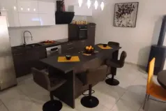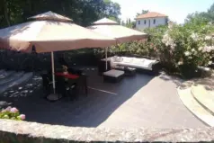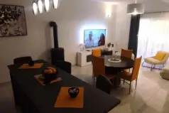 Central heating on pellets. Cooling is organized with the help of an air conditioner.In total, the house has 7 terraces, 2 barbecues, a garden and a large parking for several cars.