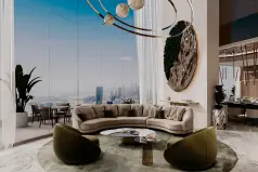 Canal Crown is a 38-storey tower with studios, 1-2 bedroom apartments and luxury residences. The designers of the de GRISOGONO brand took part in the creation of the project concept, who decorated the interiors with jewelry inserts.