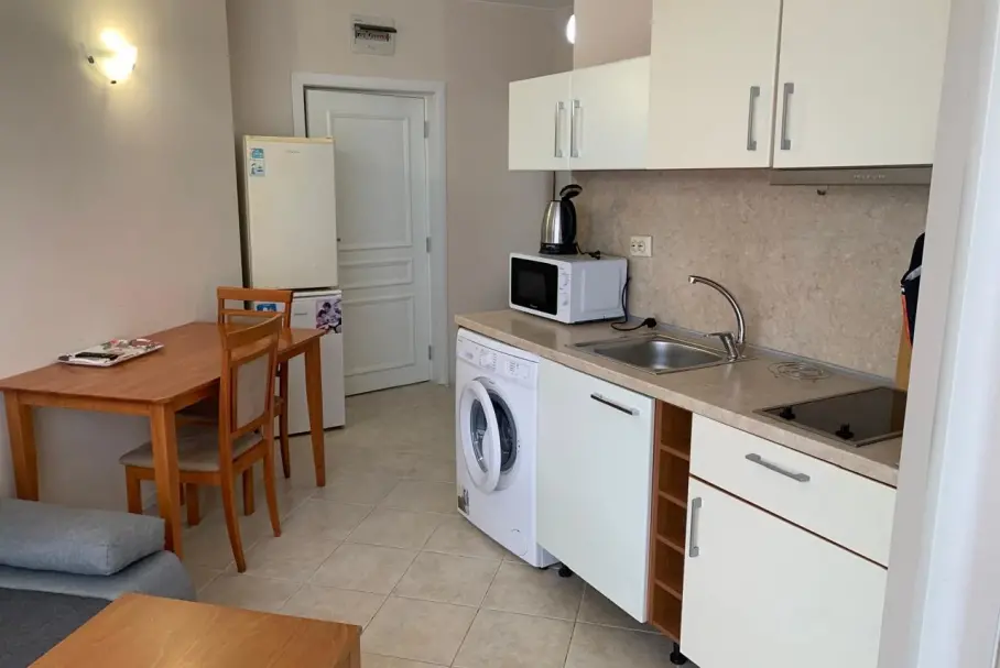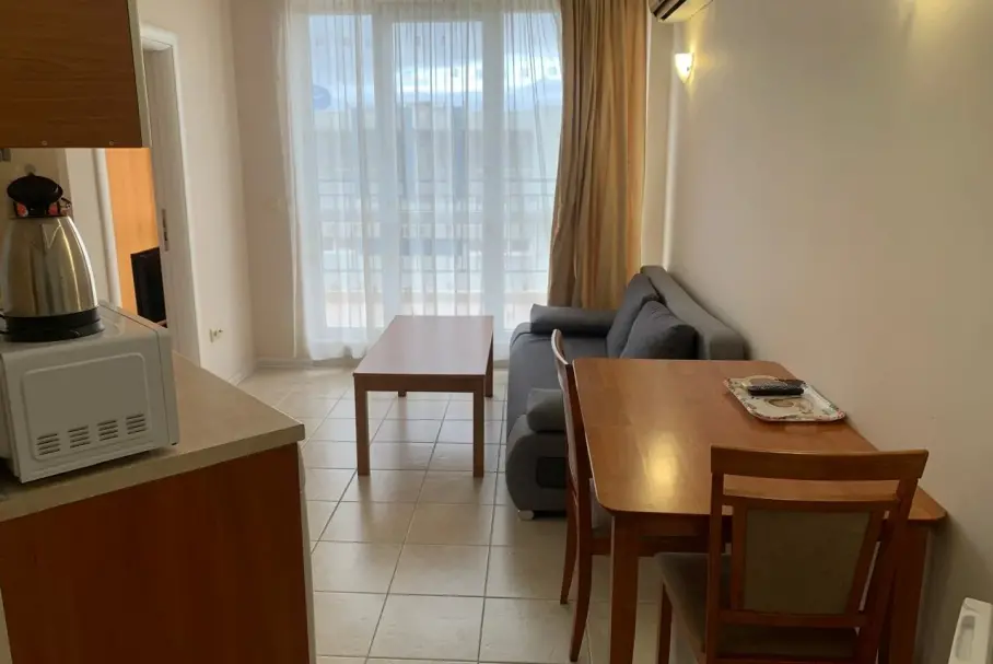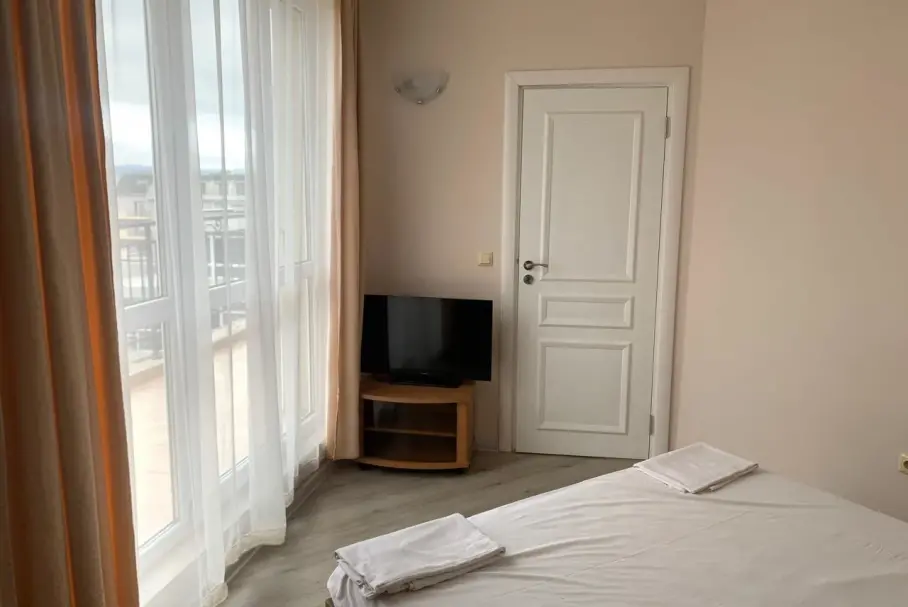 A two-room apartment on Sunny Beach with an area of 57 sq.m is located on the 6th floor and offers a picturesque view of the city and mountains. This is a cozy and functional accommodation suitable for families or couples looking for a comfortable place to relax or permanent residence. The complex is equipped with all necessary amenities, including a swimming pool, a spa area, a children\'s playground and a sports ground. For the safety of residents, the territory of the complex is under security and video surveillance. This combination of amenities makes this apartment an excellent option for those who appreciate comfort and tranquility in a popular resort area. ID:9434