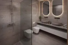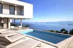 Orebic is a modern luxury villa under construction, located on the picturesque southern slopes of the Peljesac Peninsula, in Croatia's oldest protected wine region. The villa is located on a plot of 519 m2 and consists of a ground floor with a swimming pool and a terrace with a total living area of 27 m2. On the ground floor there is a covered terrace, a covered corridor, a loggia at the entrance, a room, a corridor, a dining room, a living room and two bathrooms. The total living area is 105 m2. On the second floor there is an entrance hall, three bathrooms, three bedrooms, a covered terrace, a balcony and a staircase. The total living area is 105 m2. An additional advantage of each property is its own garden with barbecue and Mediterranean plants. Contact us for any questions.
