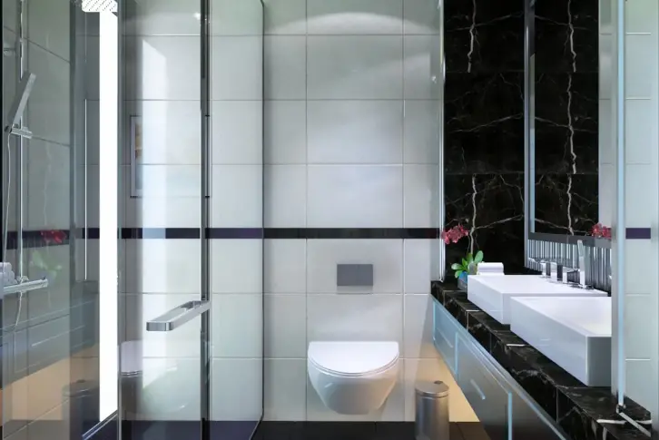 - Высококачественная керамическая плитка на полу и на стенах в ванных комнатах