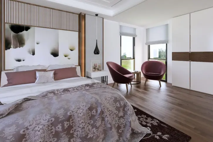 - Главная спальня с гардеробной комнатой и отдельным санузлом