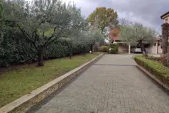 В остальной части двора есть сад с несколькими видами растений, такими как пальмы, магнолии, гранаты и оливковые деревья, затем летняя кухня (таверна) с камином и своей собственной ванной, а также небольшой дом с инструментами, которые можно преобразован в другой вид. объект. Со стороны бассейна его можно опустить в подвал, который оформлен и имеет собственную систему кондиционирования, а также может использоваться для хранения различных инверторов от приборов для ухода за бассейном и садом. Помимо летней кухни, есть крытая парковка на две машины, еще как минимум две машины можно припарковать в остальной части двора у входа во двор.