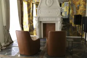 Wellness-центр. В замке создано пространство для здоровья площадью 230 кв. м, где можно полноценно восстановиться в любое время года. Эта зона включает в себя хаммам, зеркальный зал для занятий пилатесом/танцами/йогой, душевые и сауну с комнатой отдыха. Изюминка wellness-центра – большой крытый бассейн (85 кв. м), эффектно выложенный итальянскими стеклянными мозаичными камнями.