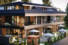 Комплекс из трех вилл будет построен в нескольких минутах ходьбы от одного из самых красивых пляжей Алании пляжа Инжекум.;