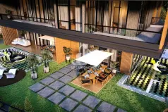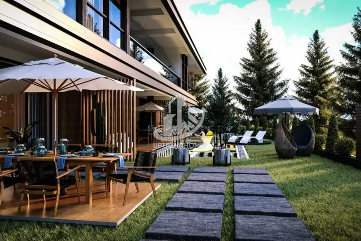 Каждая вилла будет иметь просторную территорию с ландшафтным садом, где будут расположены бассейн, места для отдыха, зона барбекю и обеденная зона. У каждой виллы будет своя парковка.