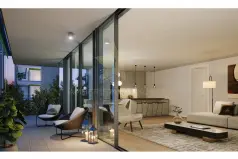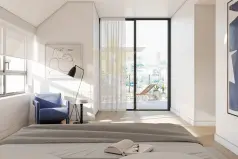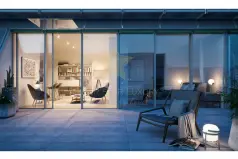 Квартира с 1 спальней расположена на 4-м этаже блока B закрытого комплекса рядом с рекой Тежу.