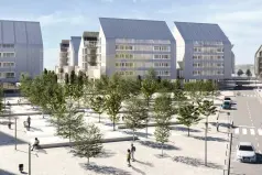 На прилегающей территории расположены парк на берегу реки, велосипедная дорожка, детская игровая площадка, урбанизация с зоной пониженной скорости и центральная площадь, обсаженная деревьями.