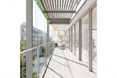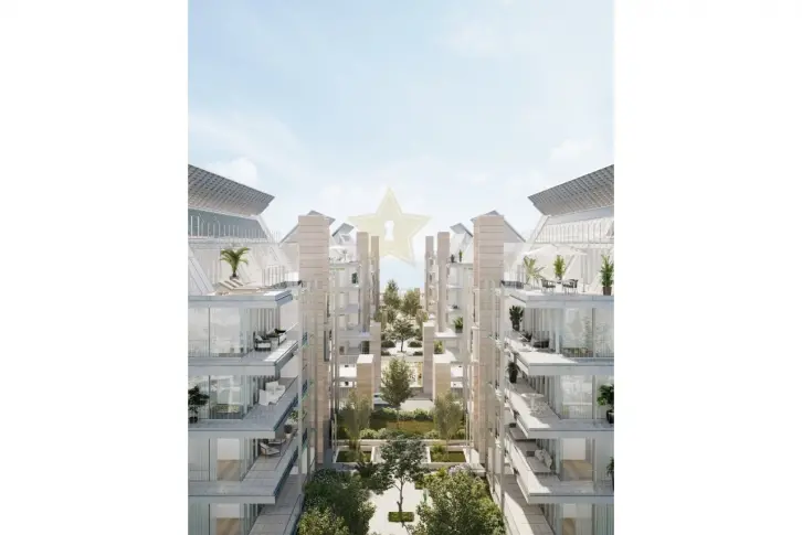 Коммунальные зоны комплекса включают коммерческие помещения и внутренний сад.