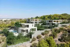 Комплекс вилл расположен на пологом склоне, откуда открывается изумительный открытый вид на море.
