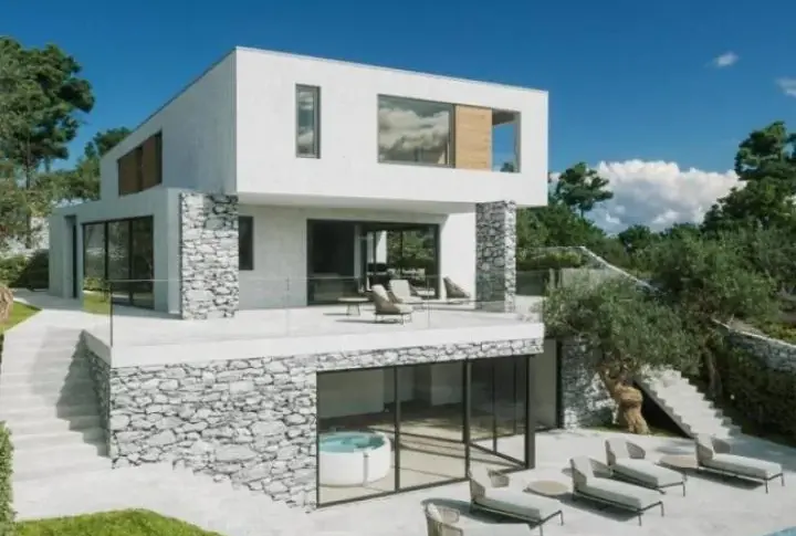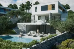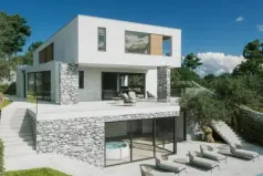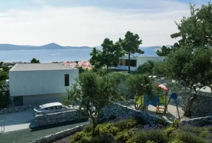 Красивая современная вилла на начальном этапе строительства, расположенная в тихом месте в 700 метрах от моря в живописных Водице недалеко от Шибеника!