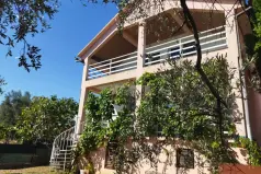 Двор засажен южными фруктами и средиземноморскими растениями, есть бетонная стоянка для двух автомобилей.