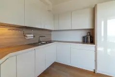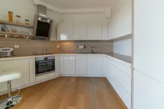 Просторная, очень светлая квартира с двумя спальнями в новом, современном доме в самом центре Будвы, на 2 линии от моря и набережной.