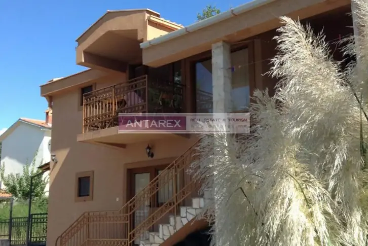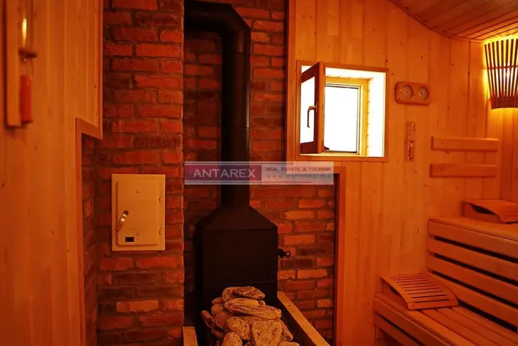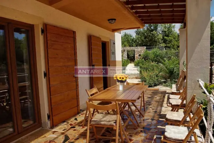 в районе Кримовица в тихом красивом месте, окруженном лесом. Расстояние до моря составляет всего 200 метров, до красивого пляжа Ploce - около 1 км. м., она состоит из двух этажей. На первом этаже находится гостиная с кухонной зоной, спальня, ванная комната, на втором этаже - три спальни, ванная комната и балкон. Структура второй виллы площадью 105 кв. м.: первый этаж - гостиная с камином, кухня, спальня с выходом на террасу, ванная комната и сауна; второй этаж - гостиная, кухня, две спальни, ванная комната и балкон. В обеих виллах произведен ремонт в современном стиле и они полностью меблированы. На участке расположены два бассейна, сад, зона барбекю и место для парковки. Есть возможность построить на участке еще один или два дома. Расстояние до Будвы 8 км, до аэропорта Тивата - 20 км.