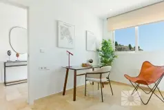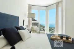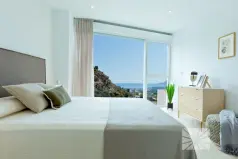 Новая уникальная готовая вилла с мебелью, с видами на море и горизонт, расположенная в закрытом жилом комплексе в городе Алтея, в 3 км от моря.