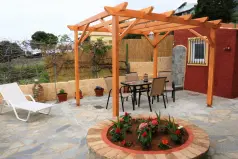 Каждая квартира состоит из двух спален, гостиной, кухни и ванной комнаты, а также просторной террасы с видом на море. Второе здание находится прямо напротив и представляет собой недостроенную студию. Территория красиво уложена брусчаткой и цветами.