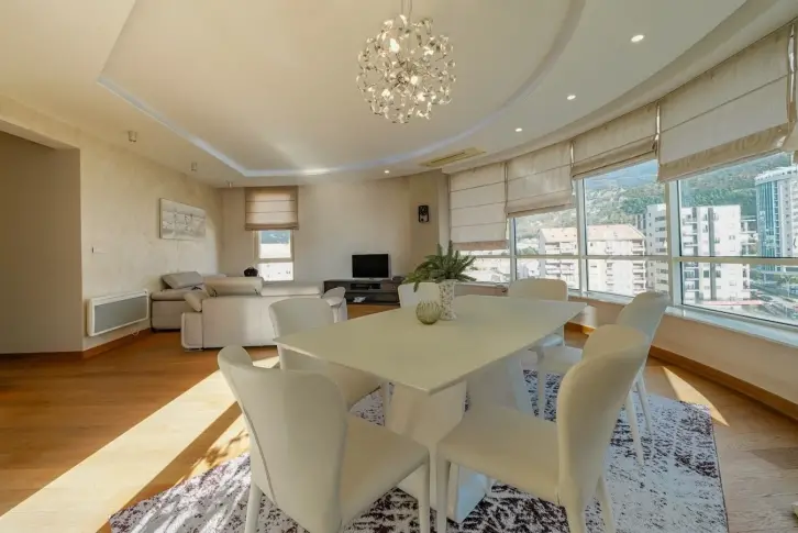Новая, наполненная светом квартира, с панорамными окнами в новом современном доме в городе Будва.