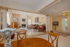 Дом на 3 уровнях включает в себя: 5 спален, 5 ванных комнат, гостиную и столовую, оборудованную кухню, прачечную, винный погреб, многочисленные террасы.