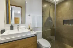 Квартиры полностью меблированы и укомплектованы мелкой и крупной бытовой техникой, сантехникой и декором.