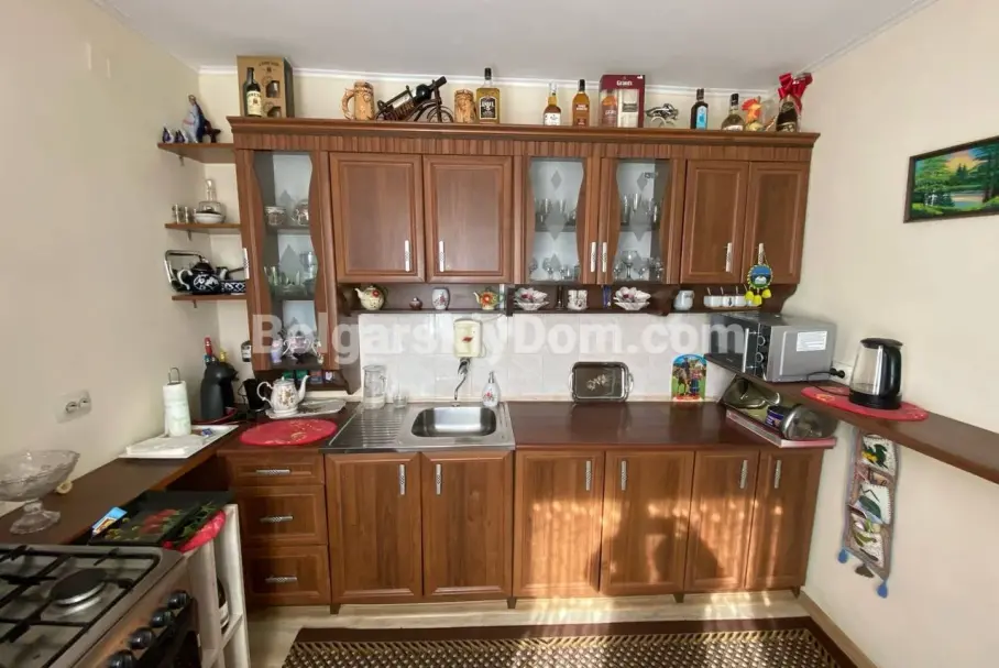 Недвижимость расположена в курортном городе Бяла. Дом находится в трех километрах от моря, в тихом районе у густого леса – великолепный климат для ПМЖ и отдыха. ВО дворе построена летняя кухня, есть две кладовые, террасы и баня. Отопление осуществляется благодаря дровяному котлу, водопровод и канализация центральные.