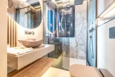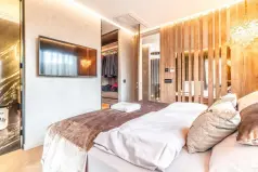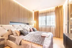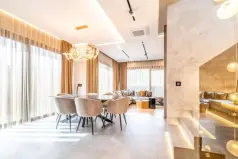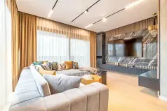 Продается полностью меблированным и оборудованным. Высококачественное оборудование: алюминиевые столярные изделия (трехслойное стеклопакет), входные двери с защитой от взлома, качественная керамика и сантехника, полы с подогревом по всей площади виллы, электрические жалюзи, тепловой насос, рекуператоры воздуха, все скрыто. потолочные блоки, умное освещение, сигнализация, камеры...