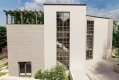 Проект выполнен для здания с бассейном общей площадью 880 м2 и гаражом.
