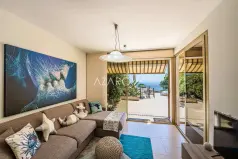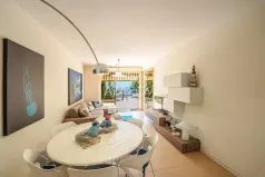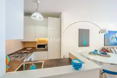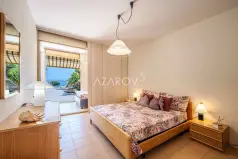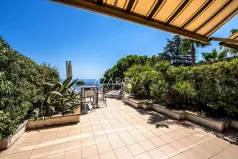 В Санремо продается двухкомнатная квартира 60 м2 после ремонта с просторной террасой 45 м2 и панорамным видом на море. Квартира находится на первом этаже в здании с лифтом и состоит из: зал с кухней и выходом на террасу где расположена зона отдыха с пляжными шезлонгами, спальная комната с видом на море и ванная комната с ванной.