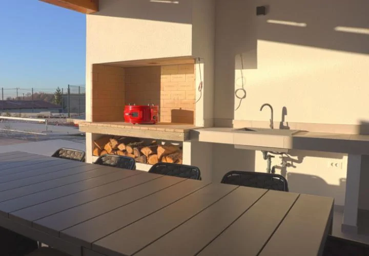 Для дополнительного удобства на вилле имеется просторная парковка на 4–6 автомобилей, что идеально подходит для семьи и гостей.