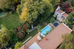In Budakalász (Hungary, near Budapest), in the prestigious Szent István Residential Area, a 286.5 sqm luxury Mediterranean villa is for sale, set on a 1,350 sqm plot with 3 bedrooms and a spacious living room. 🔹 Completely renovated in 2023, designed to meet today’s standards 🔹 Heated swimming pool (heat pump) 🏊♂️ 🔹 Wellis jacuzzi 🛁 🔹 Finnish & infra sauna + shower 🧖♀️ 🔹 Large covered terrace & garden shower 🌿🚿 🔹 Dalmatian-style garden bar 🍹 🔹 Private wellness area with soundproof internal bar 🎶 🔹 Two separate storage rooms (for bikes, scooters, garden tools) 🚴♂️ 🌺 The lush Mediterranean garden ensures complete privacy, featuring banana and palm trees 🌴 that thrive in Hungary’s climate. Every detail has been carefully designed to make you feel like you’re on holiday in Northern Italy or a Mediterranean paradise. ❄️ Air-conditioned rooms (heating & cooling), plus wall heating & ceiling cooling for maximum comfort, powered by a heat pump + gas boiler system. 🚗 Covered garage with direct access to the house, plus space for 4 more cars in the garden. ➡️ Building such a Mediterranean villa in Hungary today could take years – this makes the property a true rarity! 📍 Perfect location: close to Szentendre (City of Arts), Budapest, and Lake Lupa (“the beach of Budapest”). Kindergarten and primary schools (public & private) are just a 5–10 min walk. Phone number +36 70 7867122