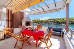 Продается целый дом с шестью эксклюзивными квартирами в первом ряду от моря в очаровательном городке Милна, одном из самых желанных мест на острове Брач.