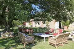 Podere Rancioli — это резиденция необыкновенного очарования, уединённая и аутентичная, расположенная в нетронутом природном окружении, обеспечивающем абсолютную приватность, при этом оставаясь удобной для доступа в любое время года и находясь на небольшом расстоянии от основных сервисов. Близость к знаменитым термам Fonteverde в Сан-Кашано-деи-Баньи придаёт этой эксклюзивной собственности дополнительную ценность.В состав владения входят элегантный главный дом и гостевой дом - общей площадью около 810 кв. м, гармонично вписанные в ландшафт.Старинный дом был тщательно и бережно отреставрирован с целью сохранения его исторической идентичности — с использованием оригинальных материалов и соблюдением традиционных пропорций тосканского сельского дома.Интерьеры, оформленные со сдержанной элегантностью, сохраняют историческую атмосферу, одновременно предлагая все современные удобства.Основное здание площадью около 700 кв. м расположено на двух уровнях. Первый этаж включает тёплые и располагающие к общению пространства: просторную полностью оборудованную кухню, столовую, изысканную гостиную-библиотеку с камином, уютную отдельную ТВ-комнату, а также две просторные спальни с ванными комнатами en suite. Этаж дополняют помещения с отдельными входами снаружи: прачечная и гардеробная зона, двухкомнатный блок с двумя спальнями и двумя ванными комнатами, дополнительное пространство, которое можно адаптировать по своему усмотрению, а также старинная дровяная печь. Сердцем резиденции является очаровательный внутренний дворик — мощёное патио, защищённое с трёх сторон, идеально подходящее для обедов и ужинов на открытом воздухе в полной приватности, а также способное служить элегантным главным входом в дом.На втором этаже расположены два просторных салона с каминами и четыре элегантные спальни, каждая с собственной ванной комнатой, предназначенные для размещения семьи и гостей в атмосфере абсолютного комфорта и уединения.Гостевой дом площадью около 60 кв. м включает гостиную-столовую, спальню и ванную комнату; в цокольном этаже находится кантина площадью около 50 кв. м.Недвижимость окружена частным парком площадью около 2,7 гектара, ухоженным, но сохранённым в естественном стиле, откуда открываются прекрасные виды на леса и окружающую сельскую местность. Пространство перед домом украшено двумя романтичными перголами с изабеллой и розами, а также великолепными вековыми дубами. Парк дополняют 50 оливковых деревьев и подогреваемая (дровами) купель.Частный бассейн размером 15 x 7 м (глубина 160 см) расположен в уединённой зоне, немного в стороне от дома и идеально интегрирован в природный ландшафт.Продажа недвижимости включает всю находящуюся в ней мебель и оборудование.