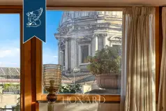 Эта исключительная резиденция занимает верхние уровни палаццо XV века в самом центре Рима, между Пантеоном и Пьяцца Навона. Двухуровневое пространство площадью около 260 кв. м сочетает исторический шарм с современным комфортом. На первом уровне расположены тройная гостиная с высокими потолками, кабинет, столовая и мастер-люкс с мезонином, а также дополнительные спальни с ванными комнатами. Верхний этаж представляет собой независимый блок с гостиной, камином и мини-кухней. Главная особенность объекта — двухуровневые террасы площадью 350 кв. м с летней кухней и фитнес-зоной, откуда открываются панорамные виды на купола и крыши города. Безопасность и удобство обеспечивают двойной лифт, консьерж, охрана и продуманные зоны для персонала. Это редкий образец роскошного жилья в историческом сердце столицы.Ссылка: 15220