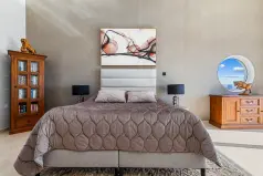 Три просторные спальни на верхнем этаже выходят на величественную террасу с видом на прекрасные пляжи и побережье Пафоса. Просторная главная спальня имеет большую ванную комнату с роскошной двойной душевой кабиной и просторную гардеробную. Просторные вторая и третья спальни на верхнем этаже имеют собственные ванные комнаты, а также просторные шкафы.