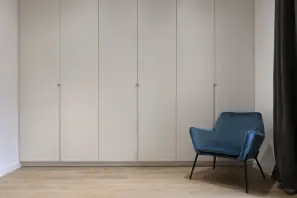 - Дизайн:Интерьер сочетает в себе элементы скандинавского стиля и современного минимализма с использованием светлых оттенков и натуральных фактур