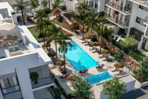 Комплекс состоит из двух зданий с 102 квартирами в каждом, выполненных в сочетании современного и традиционного стилей. На территории есть ухоженный сад, бассейны для взрослых и детей, тренажерный зал, коворкинг-зоны, зона для барбекю и детская площадка.