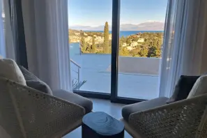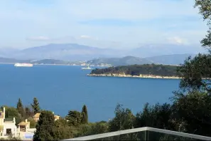 С виллы открываются захватывающие панорамные виды на Ионическое море, залив Avlaki, живописную гавань Kassiopi и остров Kaparelli.