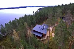 Ультрасовременное лесное поместье на берегу оз. Сайма всего в получасе езды от Иматры. Выполненная по индивидуальному архитектурному проекту, с высокопрофессиональным дизайном интерьера и ландшафтным благоустройством участка, подчеркивающим его особенности, резиденция расположена на самой верхней точке красивейшего рельефного холма, с которого открывается панорамный вид на воду.